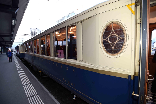 前往達(dá)沃斯通常乘坐的紅色窄軌小火車很有特色。克強(qiáng)總理此次乘坐的專列是瑞方鐵路公司專門用于租借的,充當(dāng)過不少國家領(lǐng)導(dǎo)人的專列,顏色不同于普通小火車的紅色,而是藍(lán)白配色的。