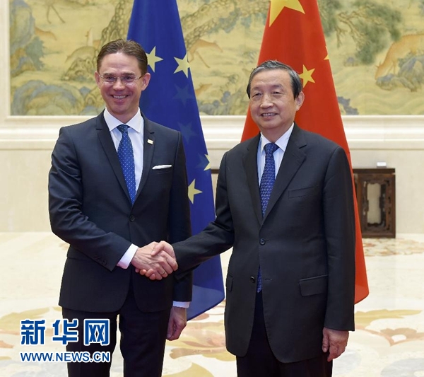 馬凱表示,今年是中歐建交40周年,雙方要認真落實兩國領(lǐng)導人重要共識,共同深化全方位、多層次、寬領(lǐng)域互利合作,推動中歐全面戰(zhàn)略伙伴關(guān)系向前發(fā)展。當前,世界經(jīng)濟復蘇狀況依然錯綜復雜,中歐應加強宏觀政策溝通協(xié)調(diào),推動地區(qū)和全球經(jīng)濟持續(xù)穩(wěn)定增長。要找準“一帶一路”倡議和“歐洲投資計劃”契合點,加強國際產(chǎn)能合作,建設(shè)互聯(lián)互通基礎(chǔ)設(shè)施,并探索數(shù)字經(jīng)濟、網(wǎng)絡安全等合作新領(lǐng)域。中歐已從單向投資進入雙向投資新階段,中方期待早日達成高水平的中歐投資協(xié)定。