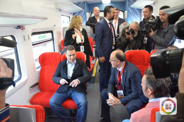 圖為馬其頓總理格魯埃夫斯基(左一)乘坐動(dòng)車。新華社發(fā)