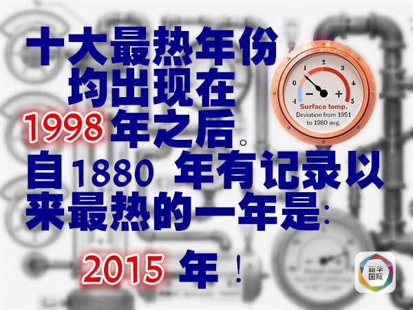 由于厄爾尼諾等現象的作用,地球每年平均氣溫略有差異不足為奇。但縱觀1880年有可靠記錄以來的歷年氣溫狀況可以看出,地球表面溫度呈爬高之勢,10個氣溫最高的年份都出現在1998年之后,而2015年是目前為止最熱的一年。