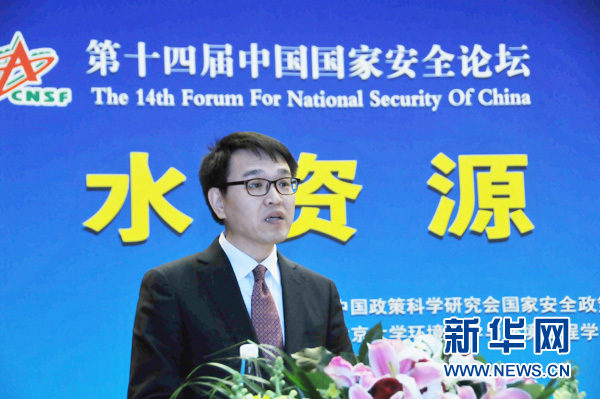 12月19日,以“水資源與國家安全”為主題的第十四屆中國國家安全論壇在北京舉行。圖為國家環保部總工程師趙英民在論壇上做主題報告。(雷東瑞 攝)