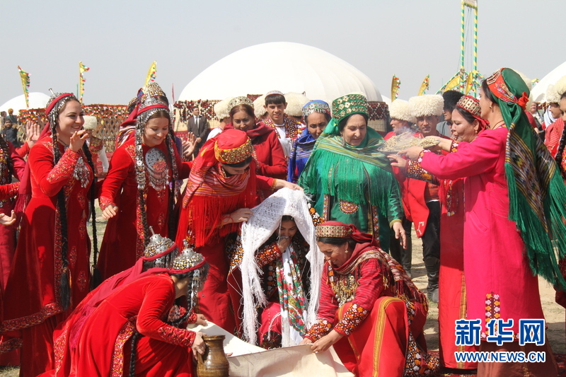 3月21日,在土庫曼斯坦首都阿什哈巴德,現場上演結婚場面。新華社記者盧敬利 攝