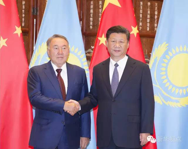 同納扎爾巴耶夫總統(tǒng)會談時,習近平主席指出,中哈雙方要全面推進“一帶一路”建設。兩國元首還共同見證了有關(guān)“絲綢之路經(jīng)濟帶”建設與“光明之路”新經(jīng)濟政策對接合作等文件的簽署。