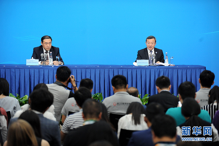 9月3日,中國代表團在浙江杭州舉行新聞發布會,商務部副部長王受文就G20杭州峰會經貿成果展望向記者介紹情況并回答提問。新華網記者?陳競超 攝