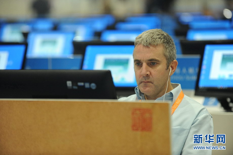 二十國集團領導人第十一次峰會9月4日至5日在浙江杭州舉行。峰會新聞中心一派繁忙景象,境內(nèi)外各路媒體記者使出“洪荒之力”,實時報道峰會動態(tài)。新華網(wǎng)記者 陳競超 攝