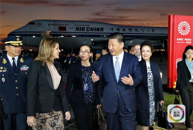 當?shù)貢r間11月18日,國家主席習近平抵達利馬,出席亞太經(jīng)合組織第二十四次領導人非正式會議并對秘魯共和國進行國事訪問。習近平和夫人彭麗媛受到秘魯副總統(tǒng)阿勞斯等熱情迎接。新華社記者鞠鵬攝