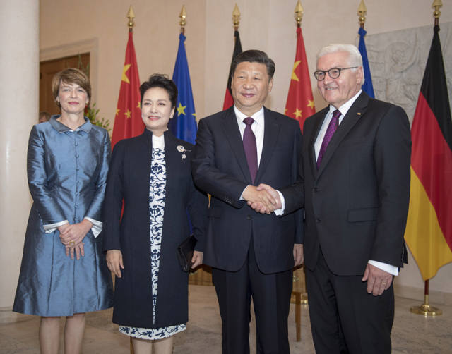 5日上午,德國總統施泰因邁爾在總統府舉行隆重儀式,熱情歡迎習近平主席來訪。“過去幾十年,德中關系取得長足進展,各領域友好合作成果豐碩,在國際事務中保持密切協作。德方愿同中方加強在二十國集團等多邊框架下合作,共同維護國際和平,促進世界發展。”施泰因邁爾在會晤中向習主席承諾。