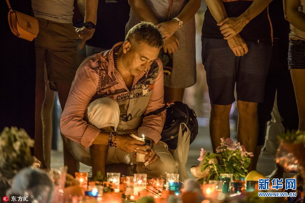 當(dāng)?shù)貢r間2017年8月18日,西班牙巴塞羅那,當(dāng)?shù)孛癖婞c燭獻(xiàn)花悼念恐襲事件遇難者。17日,一輛白色貨車在巴塞羅那市中心蘭布拉大道加泰羅尼亞廣場附近沖撞人群,據(jù)媒體報道,死亡人數(shù)已經(jīng)升至14人。(圖片來源: 東方IC)
