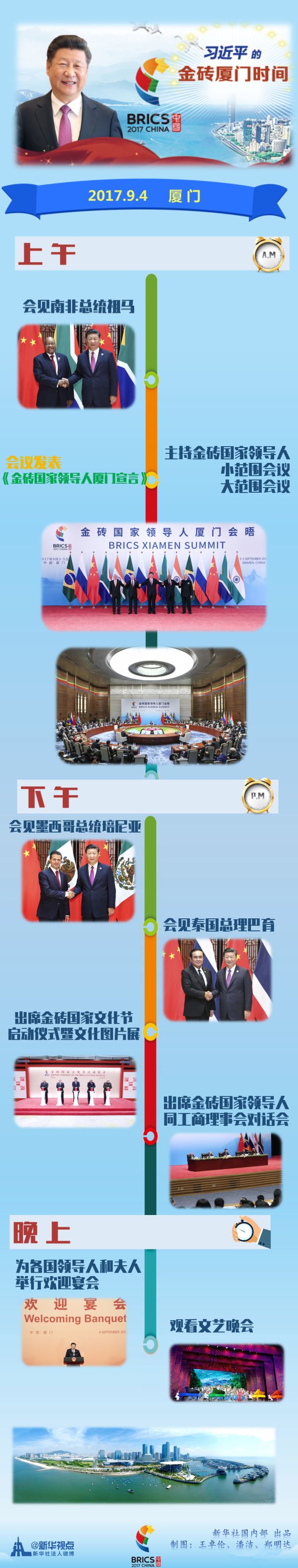 廈門,顧名思義是“大廈之門”。我衷心希望廈門會(huì)晤為我們開(kāi)啟新的合作之門、發(fā)展之門,迎來(lái)金磚合作第二個(gè)“金色十年”,開(kāi)辟新興市場(chǎng)國(guó)家和發(fā)展中國(guó)家光明未來(lái)。