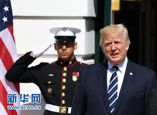 10月2日,美國總統特朗普(右)在華盛頓白宮出席活動。新華社記者 殷博古 攝