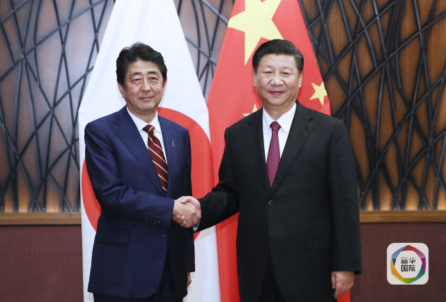 11月11日,國家主席習近平在越南峴港會見日本首相安倍晉三。新華社記者蘭紅光攝