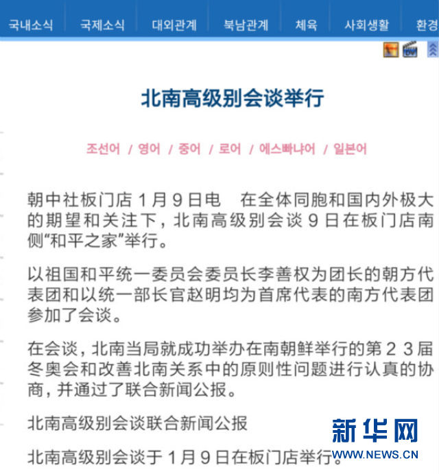 文章前一部分是對會談情況的簡單介紹,后一部分直接發(fā)布了朝韓高級別會談聯(lián)合新聞公報(bào)的內(nèi)容。