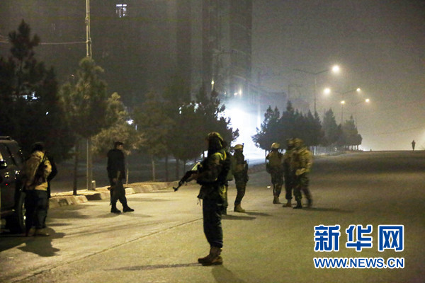 1月20日,在阿富汗首都喀布爾,安全人員在喀布爾洲際酒店附近警戒。 新華社發(fā)(拉赫馬特攝)