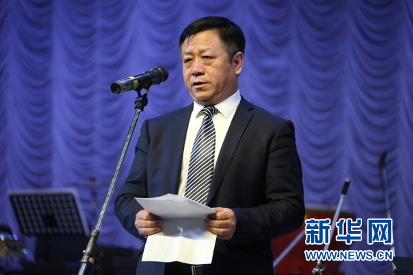 中國(guó)駐哈薩克斯坦大使張漢暉為音樂(lè)會(huì)致辭。新華網(wǎng)發(fā) (阿比洛夫攝)