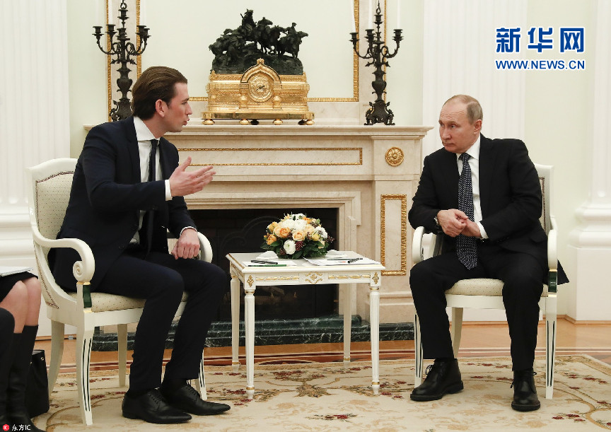 當地時間2月28日,俄羅斯莫斯科,奧地利總理庫爾茨訪問俄羅斯,與俄總統普京在克里姆林宮舉行會晤。(圖片來源:東方IC)
