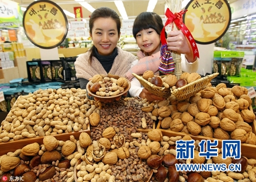 為迎接正月十五,韓國超市促銷堅果食品。(圖片來源:東方IC)