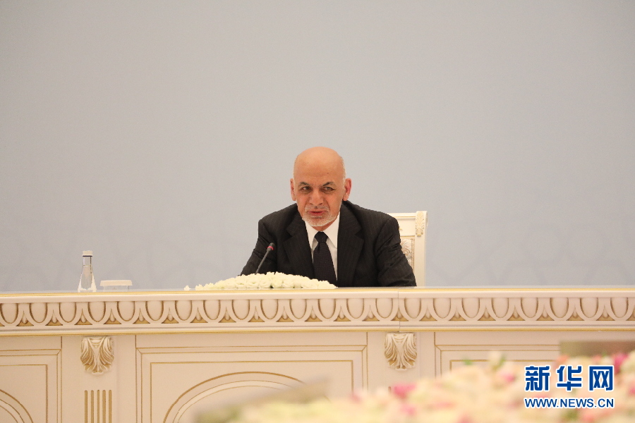阿富汗總統加尼在會議上發言。阿富汗問題高級別會議27日在烏茲別克斯坦首都塔什干舉行。新華社記者周良攝