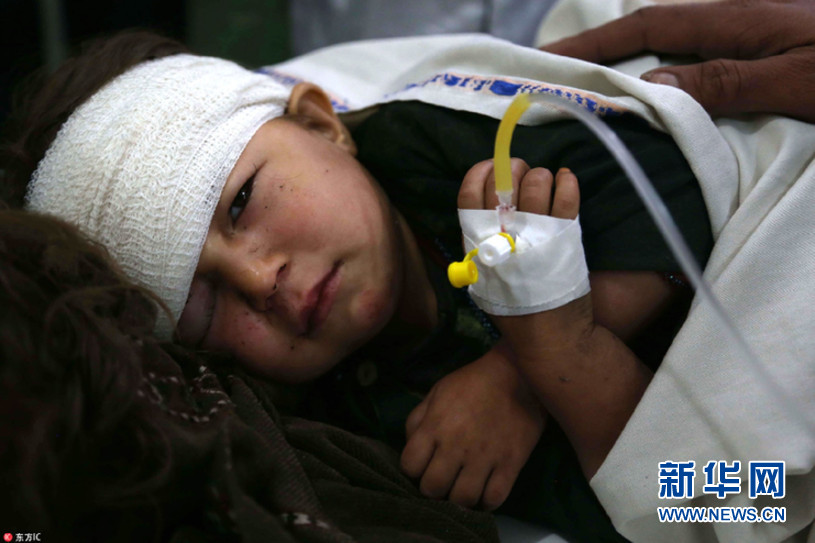 當(dāng)?shù)貢r(shí)間2018年4月20日,阿富汗賈拉拉巴德,受傷的兒童在醫(yī)院接受治療。4月19日,當(dāng)?shù)匕l(fā)生爆炸事故,致至少5名平民死亡,14人受傷。(圖片來(lái)源:東方IC)