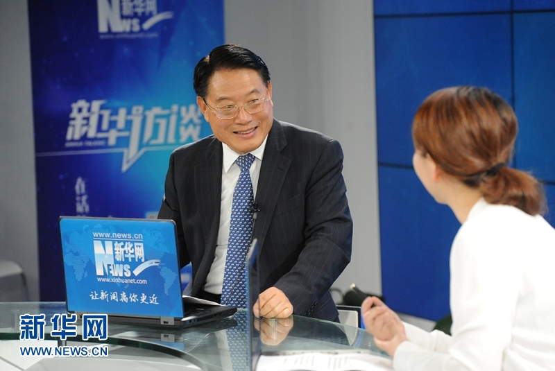 4月24日,聯合國工業發展組織總干事李勇(左)在北京接受了新華網獨家專訪。圖為訪談現場。新華網記者 陳競超攝