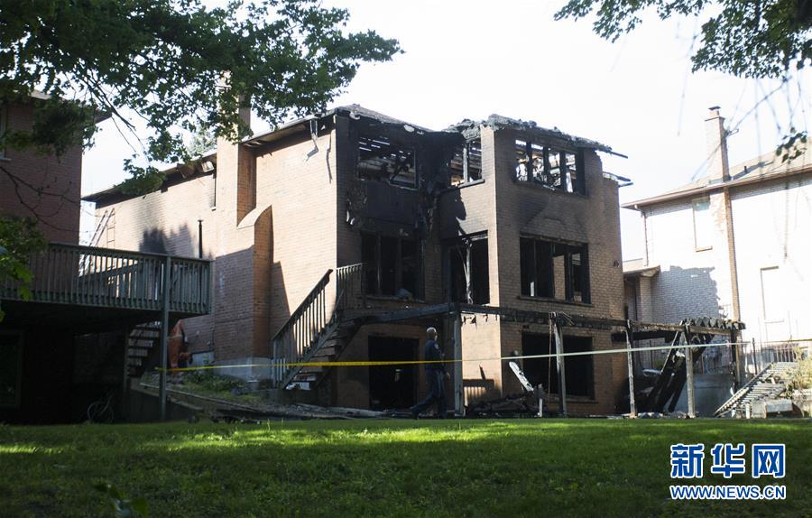 5月30日,在加拿大多倫多,警方在失火房屋外拉起警戒線并展開調查。新華社發(鄒崢 攝)