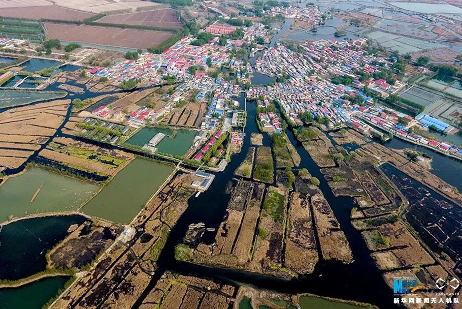 航拍白洋淀淀里村莊。新華網 張潤貞 攝