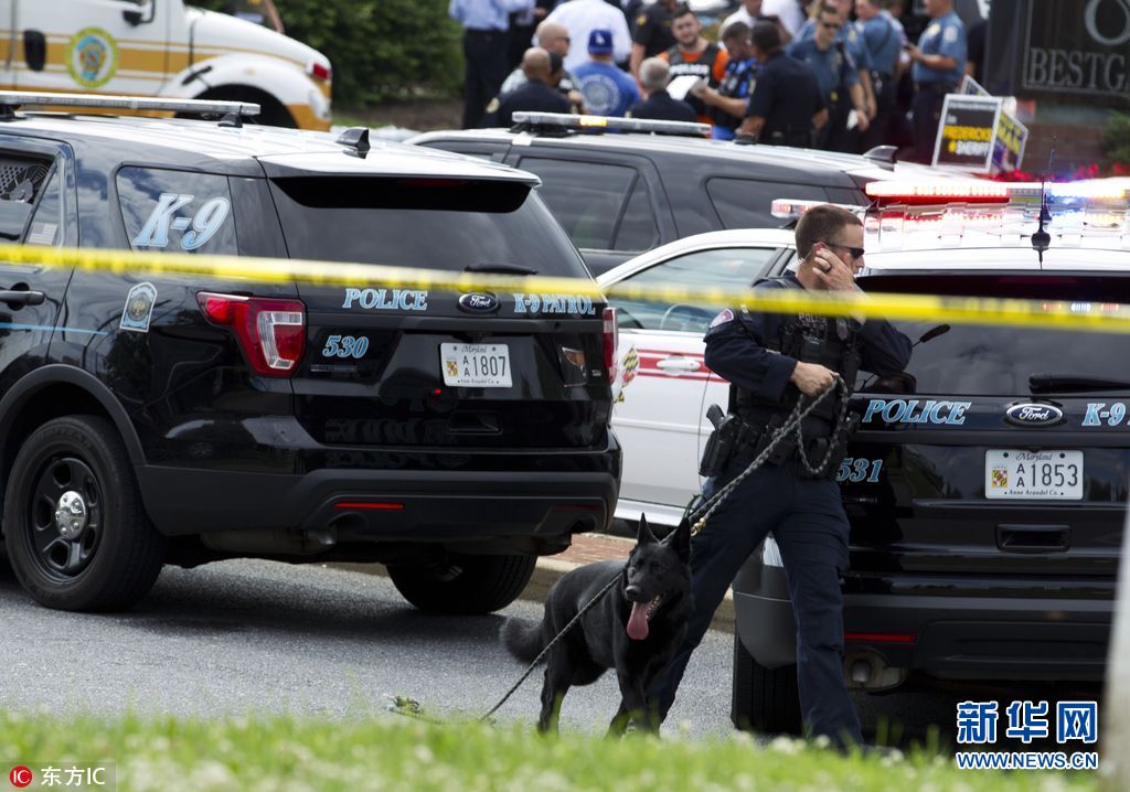 6月28日,美國馬里蘭州首府安納波利斯,當地一報社發生槍擊。馬里蘭州官員稱,槍擊目前已致5人死亡,多人受傷。(圖片來源:東方IC)