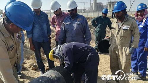 “熱”土到底有多熱?1月份就已達(dá)到30多度的塔爾,進(jìn)入3月份氣溫已達(dá)到39℃,溫度將逐漸升到45℃以上,加上超強(qiáng)紫外線的“摧殘”,在這樣的工作環(huán)境下,DN400的管道溝下安裝無論是對質(zhì)量的要求,還是對施工人員來說,難度都特別大,為了保障質(zhì)量過關(guān),每一道口中方負(fù)責(zé)人都親自把關(guān),親自驗收,絕不允許任何不利于質(zhì)量的情況發(fā)生。