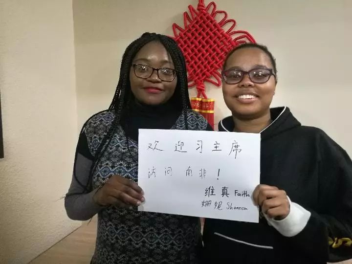 “雖然中文學(xué)起來很有挑戰(zhàn)性,但這也恰恰是吸引我的原因。”姍妮和同伴維真向記者驕傲地展示她們書寫的漢字:歡迎習(xí)主席訪問南非!