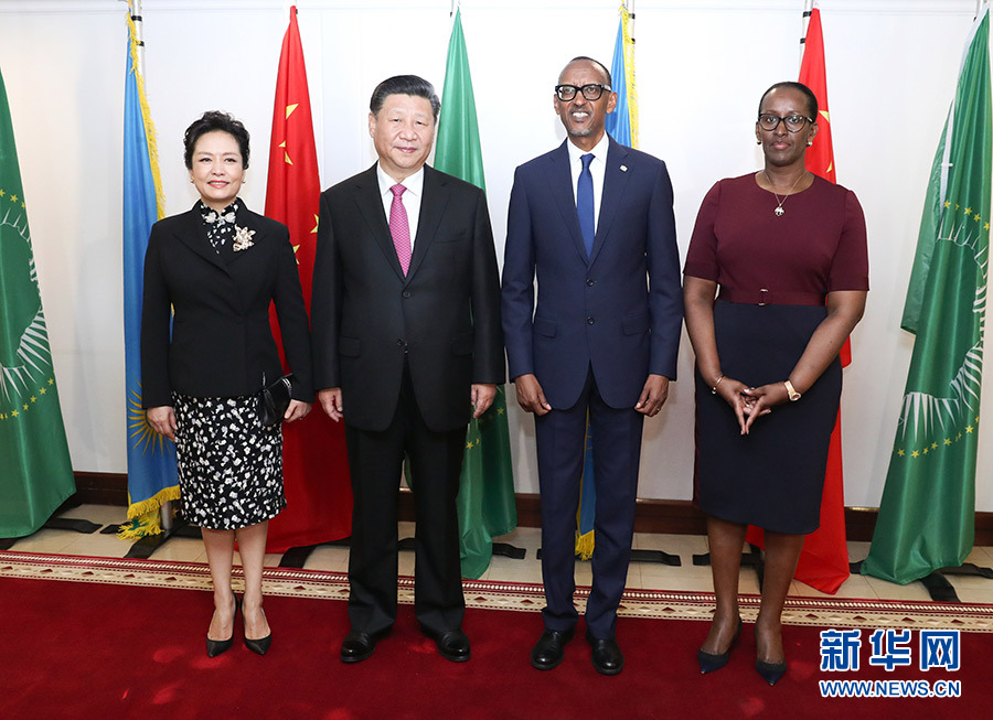 7月23日,國家主席習近平在基加利同盧旺達總統卡加梅舉行會談。這是會談前,習近平和夫人彭麗媛同卡加梅和夫人珍妮特合影。 新華社記者 龐興雷 攝