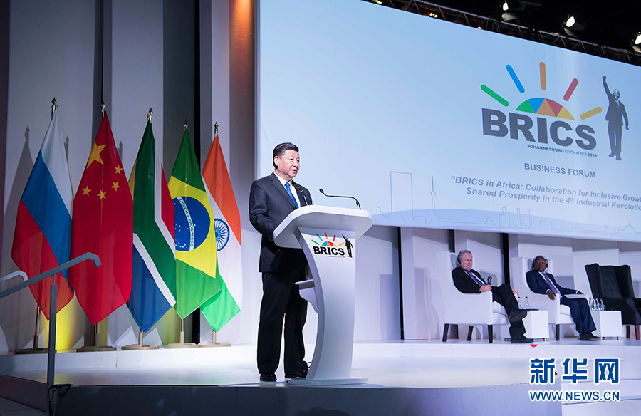 7月25日,國(guó)家主席習(xí)近平應(yīng)邀出席在南非約翰內(nèi)斯堡舉行的金磚國(guó)家工商論壇,并發(fā)表題為《順應(yīng)時(shí)代潮流 實(shí)現(xiàn)共同發(fā)展》的重要講話。新華社記者王曄攝