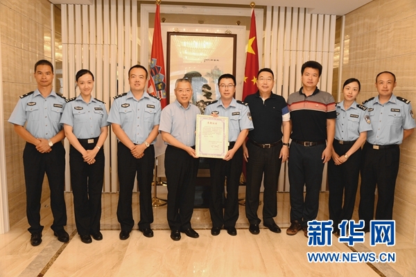 8月14日,中國駐克羅地亞大使胡兆明(左四)在薩格勒布為圓滿完成首次中克警務聯巡的中國警察頒發表彰證書。6名中國警察15日從克羅地亞首都薩格勒布啟程回國,為期一個月的中國與克羅地亞首次旅游季警務聯合巡邏圓滿結束。新華網發 高磊攝