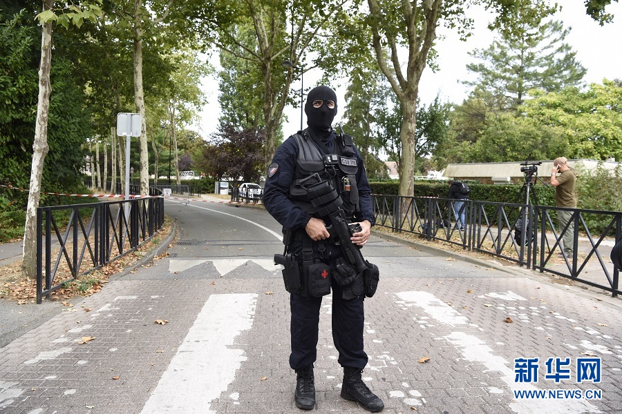 8月23日,在法國巴黎西南郊特拉普市,一名警察在案發(fā)現(xiàn)場警戒。據(jù)法國媒體報(bào)道,23日上午,一名男子在首都巴黎西南郊的特拉普市街頭持刀行兇,造成2人死亡、1人受傷;該男子被隨后趕來的法國警方擊斃。 新華社記者陳益宸攝