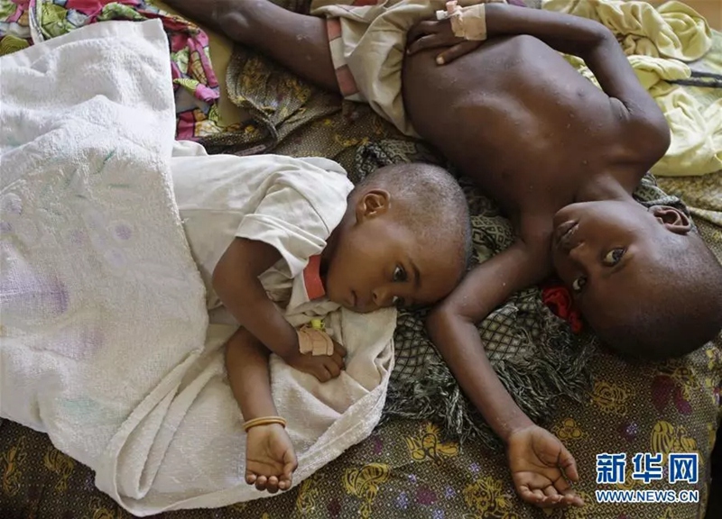 在剛果(金)瓦利卡萊,兩名得了瘧疾的兒童躺在醫院里。新華社/美聯