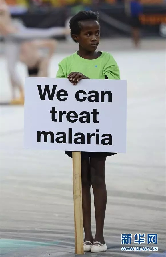 在南非約翰內斯堡,一名女孩手舉抗擊瘧疾的標語牌。新華社/法新