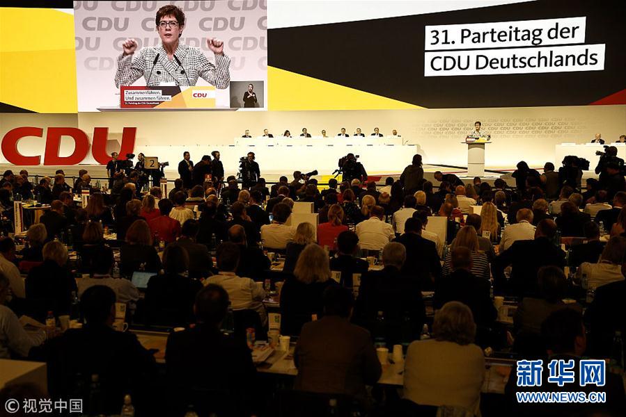 當地時間2018年12月7日,德國漢堡,德國基督教民主聯盟(基民盟)全國代表大會召開。根據會議選舉結果,基民盟秘書長安妮格雷特·克蘭普-卡倫鮑爾接替德國總理安格拉·默克爾,成為新一屆基民盟主席。 (圖片來源:視覺中國)
