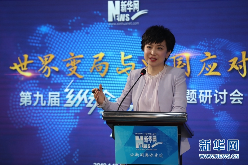 2019年1月10日,新華網第九屆“縱論天下”國際問題研討會在北京舉行。圖為研討會主持人、新華網劉燕。新華網 郭小天 攝