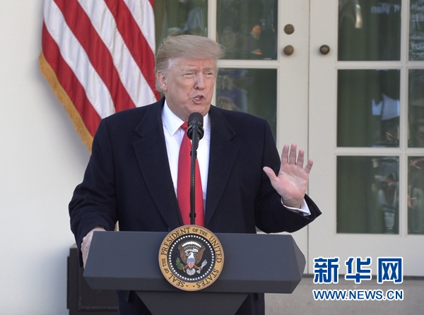 1月25日,美國總統特朗普在華盛頓白宮發表講話。新華社記者 胡友松 攝?