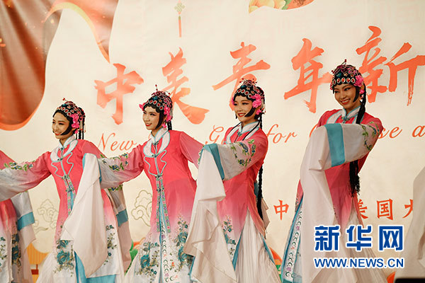 2月16日,在美國首都華盛頓,演員在中美青年新春聯(lián)歡活動上表演。 新華社記者 劉杰 攝