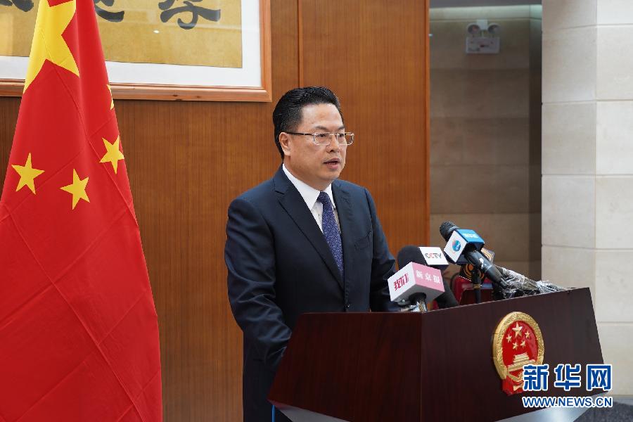 4月24日,在斯里蘭卡首都科倫坡,中國駐斯里蘭卡大使程學(xué)源在記者會(huì)上講話。 新華社記者 林昊 攝