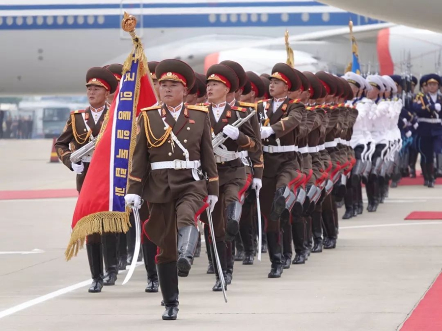朝方在機(jī)場(chǎng)舉行隆重歡迎儀式。