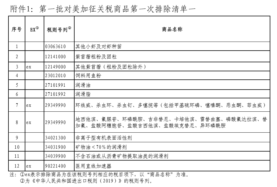 清單二所列商品,自2019年9月17日至2020年9月16日,不再加征我為反制美301措施所加征的關(guān)稅,已加征的關(guān)稅稅款不予退還。