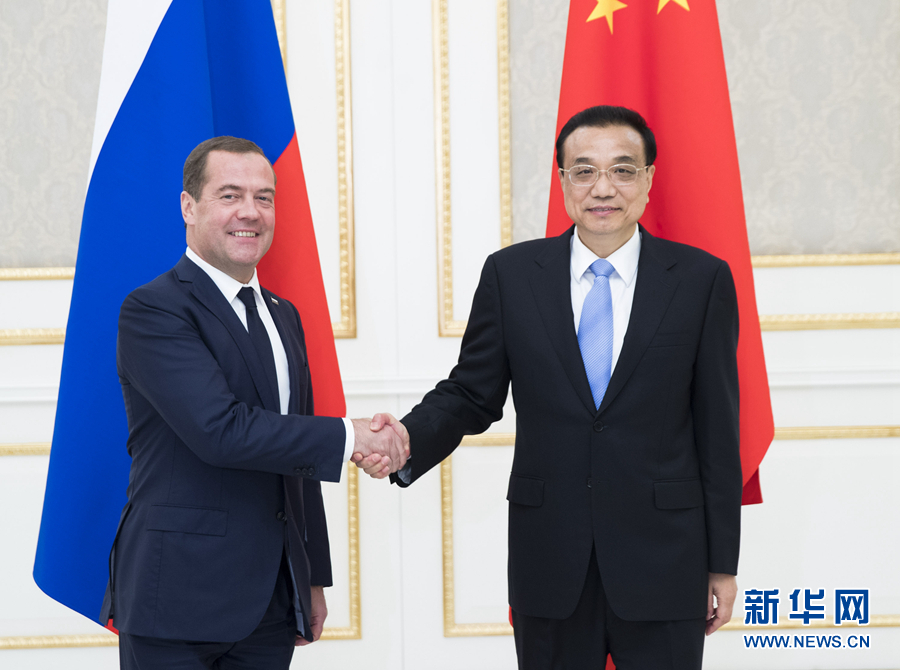新華社塔什干11月1日電(記者白潔 蔡國棟)當地時間11月1日晚,國務院總理李克強在塔什干會見出席上海合作組織成員國總理會的俄羅斯總理梅德韋杰夫。