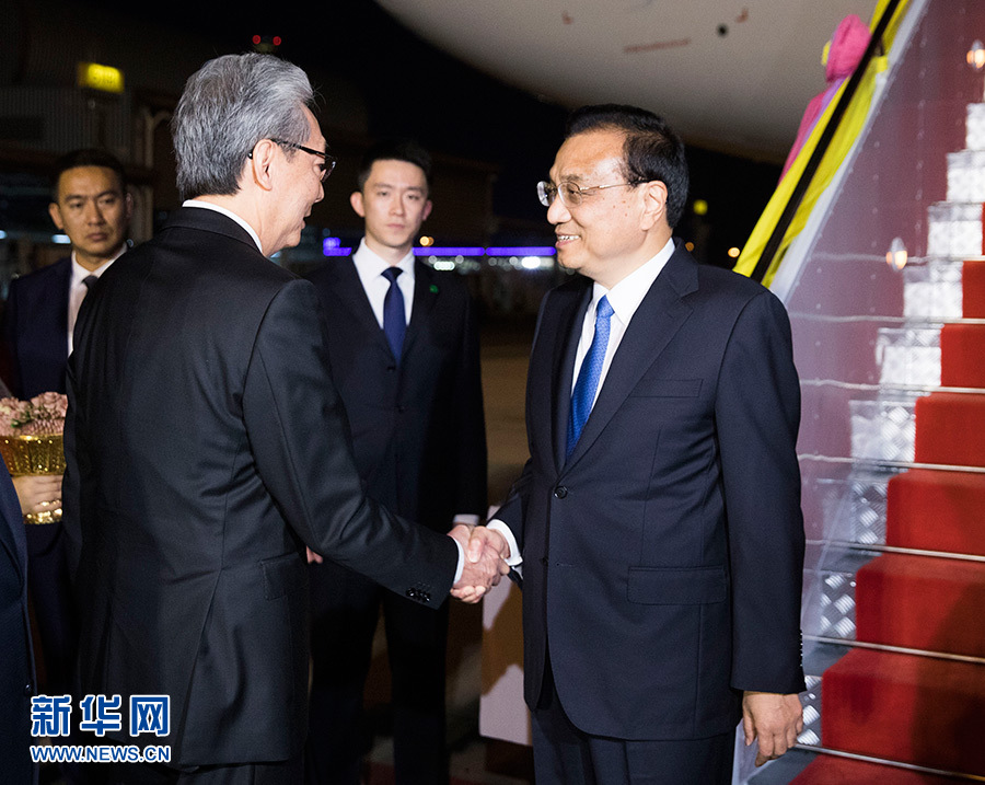 當(dāng)?shù)貢r間11月2日晚,應(yīng)泰王國總理巴育邀請,國務(wù)院總理李克強(qiáng)乘專機(jī)抵達(dá)曼谷素萬那普機(jī)場,將出席第22次中國-東盟(10+1)領(lǐng)導(dǎo)人會議、第22次東盟與中日韓(10+3)領(lǐng)導(dǎo)人會議和第14屆東亞峰會(EAS),并對泰國進(jìn)行正式訪問。泰國副總理頌奇率政府高級官員到機(jī)場迎接。 新華社記者 黃敬文 攝