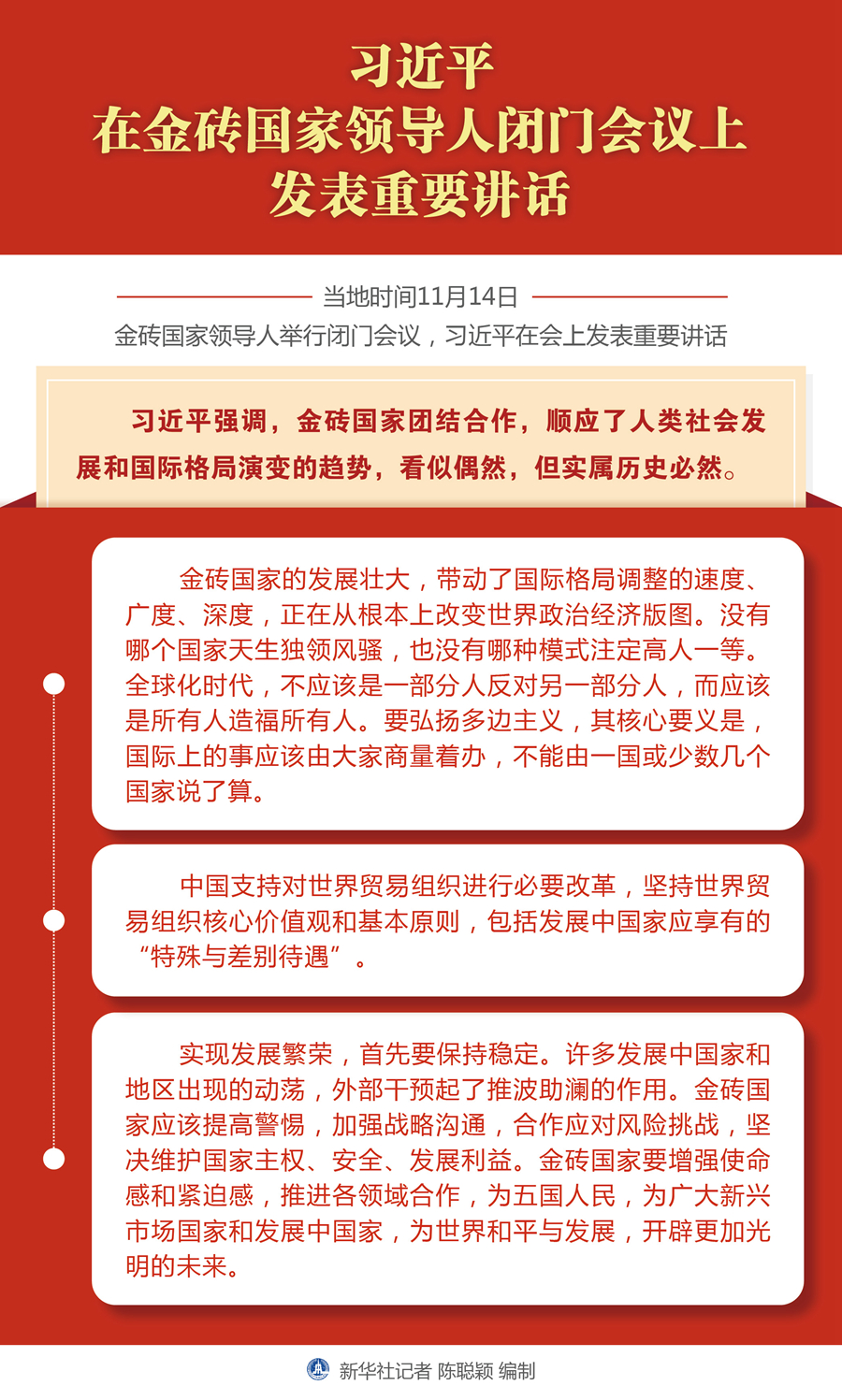 圖表:習近平在金磚國家領導人閉門會議上發表重要講話 新華社記者 陳聰穎 編制