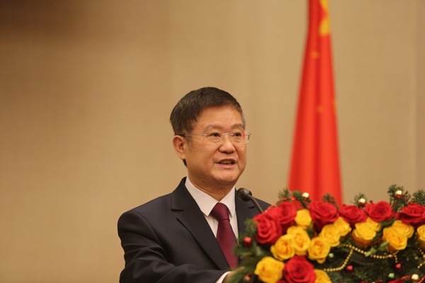 12月15日,中國駐白俄羅斯大使崔啟明在華人華僑新年招待會上致辭。魏忠杰 攝