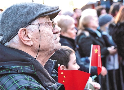 當地民眾在一場主題為“塞爾維亞人民永遠和中國兄弟在一起”的音樂會上,手持中國國旗表示對中國的支持。新華社發