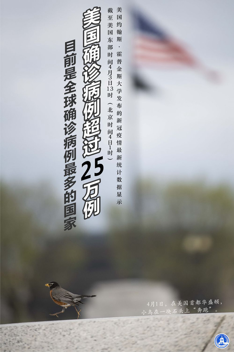 新華社紐約4月3日電 美國約翰斯·霍普金斯大學3日發(fā)布的新冠疫情最新統(tǒng)計數(shù)據顯示,美國確診病例超過25萬例。美國目前是全球確診病例最多的國家。