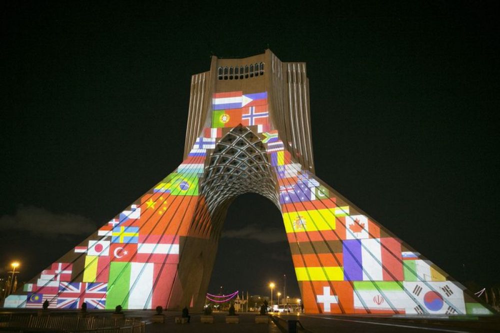 3月31日,伊朗首都德黑蘭地標建筑自由塔上演燈光秀,為世界抗擊新冠肺炎疫情加油。新華社發(fā)(艾哈邁德·哈拉比薩斯 攝)