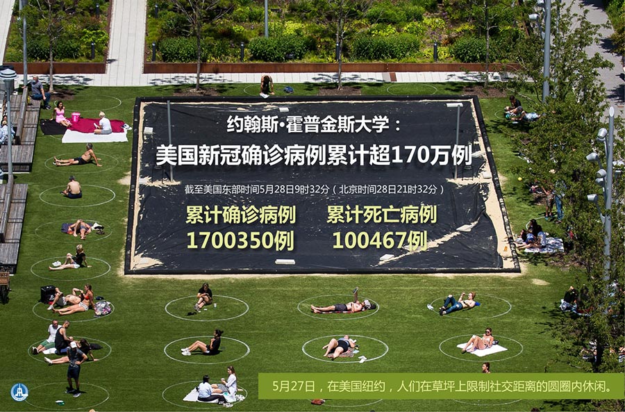 新華社紐約5月28日電 美國約翰斯·霍普金斯大學(xué)28日發(fā)布的新冠疫情最新統(tǒng)計(jì)數(shù)據(jù)顯示,截至美國東部時(shí)間28日9時(shí)32分(北京時(shí)間28日21時(shí)32分),美國累計(jì)確診病例達(dá)1700350例,累計(jì)死亡病例達(dá)100467例。