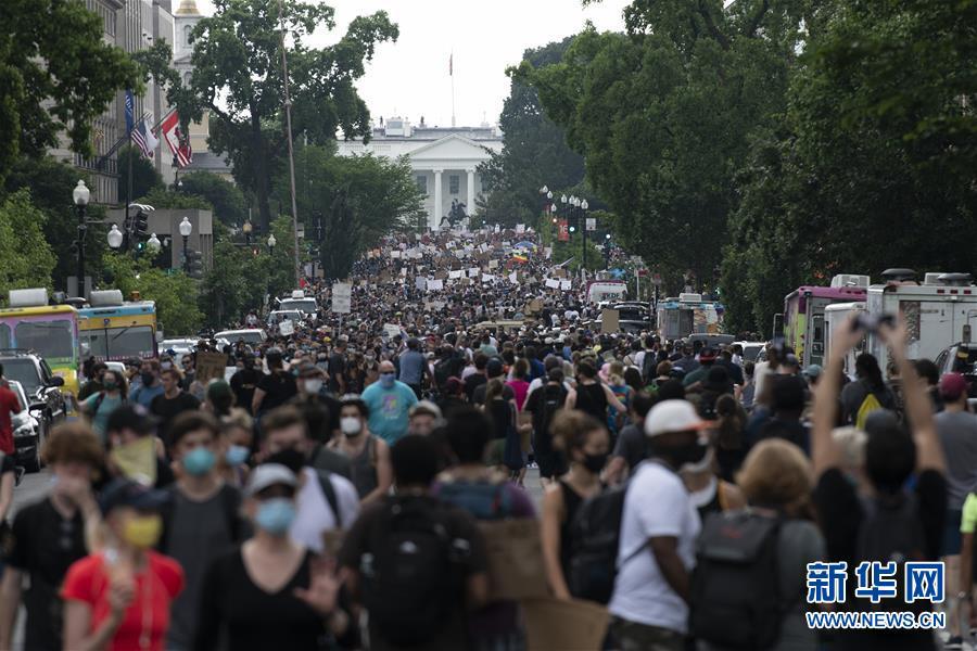 6月6日,人們在美國華盛頓白宮附近游行。美國首都迎來了十幾天來參與人數最多的游行活動。新華社記者 劉杰 攝